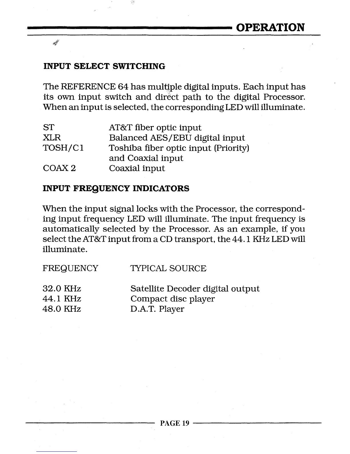 select the AT&T input from a CD transport, the 44.1 KHz LED will