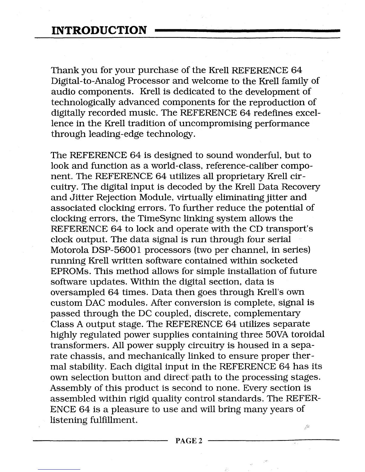Thank you for your purchase of the Krell REFERENCE 64