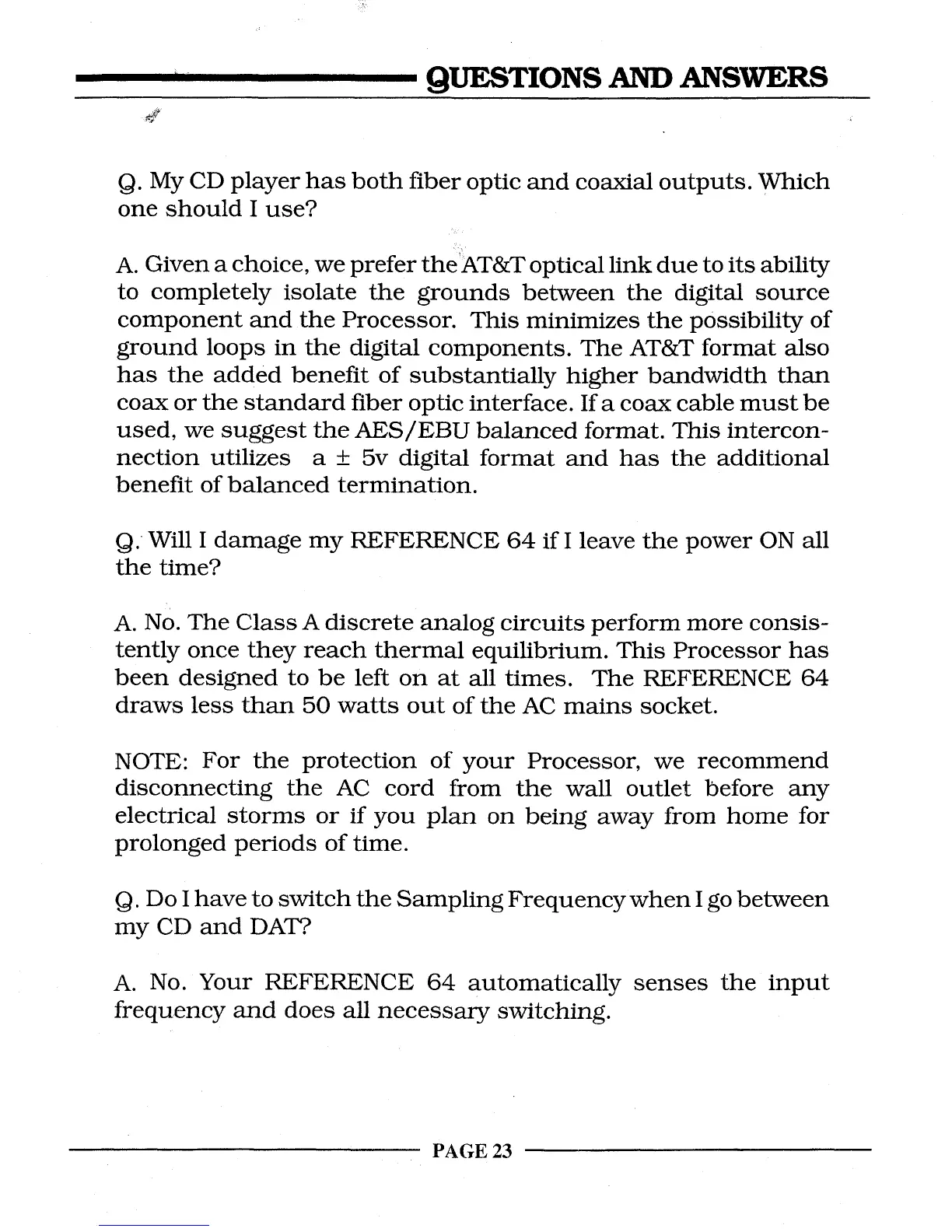 Q. Will I damage my REFERENCE 64 if I leave the power ON all