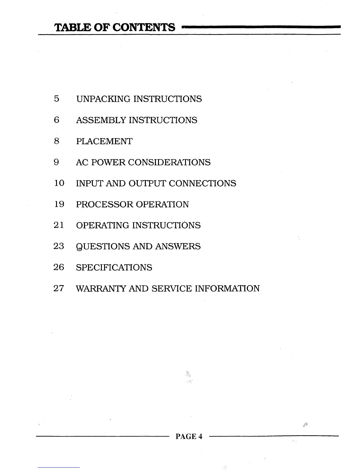 Krell Industries Digital-to-Analog Processor REFERENCE 64 - Table of Contents