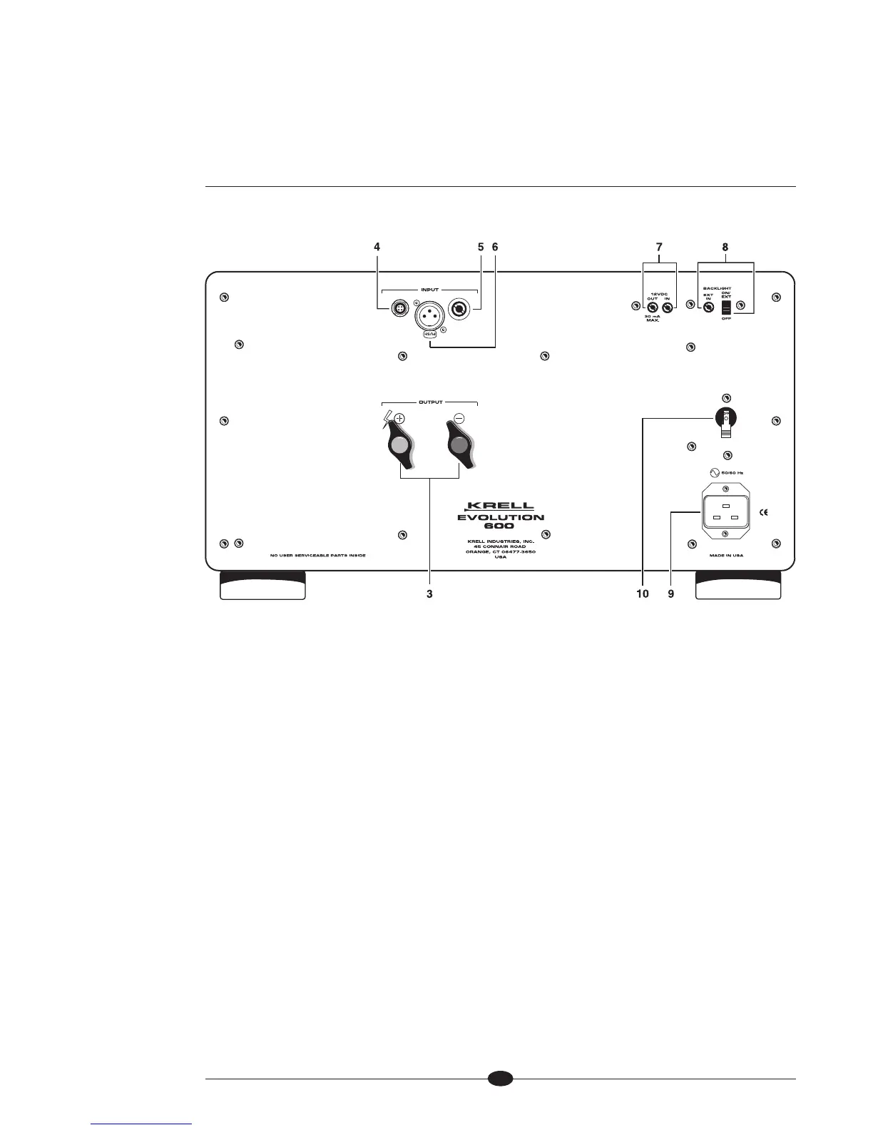 Figure 6 Evolution Monaural Amplifier Back Panel (Evolution 600 shown)