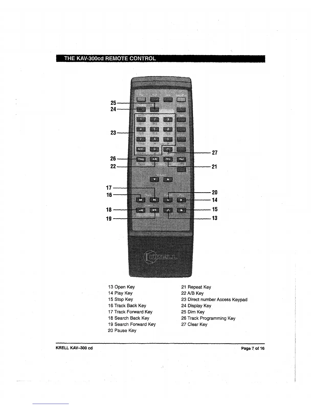 Krell Industries Front Loading Compact Disc Player KAV-300cd - Remote Control