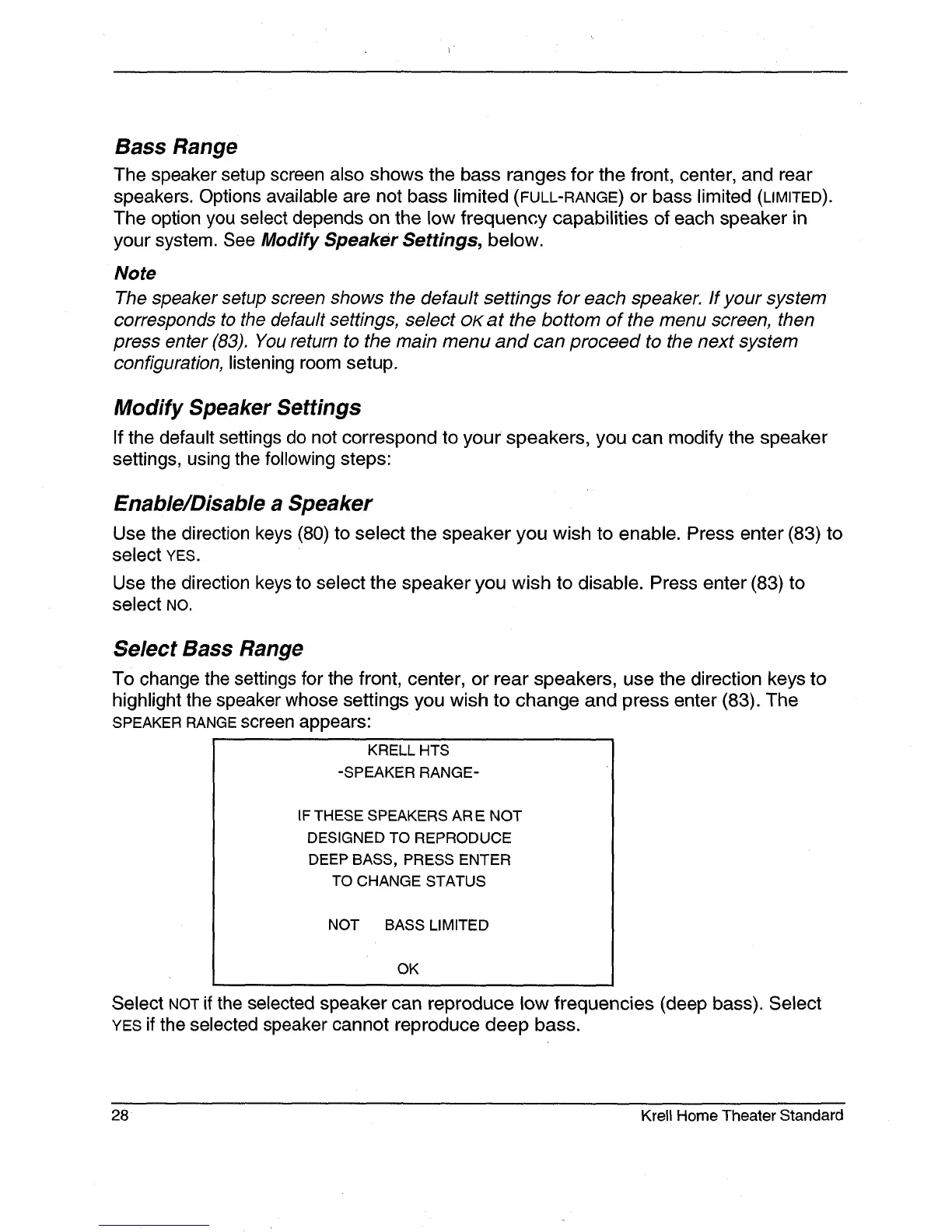 speakers. Options available are not bass limited (FULL-RANGE) or bass limited (LIMITED).