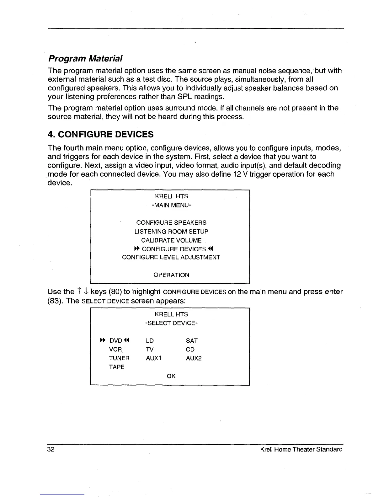 Use the 1" $ keys (80) to highlight CONFIGURE DEVICES on the main menu and press enter