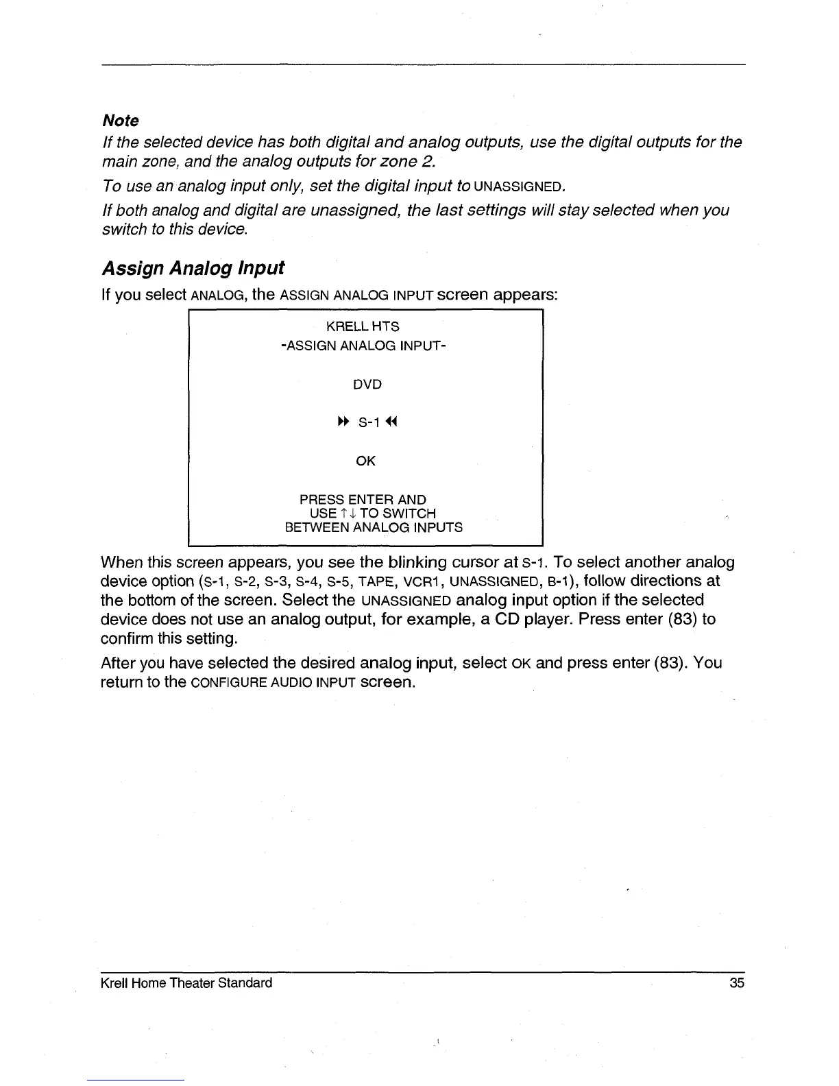 device does not use an analog output, for example, a CD player. Press enter (83)