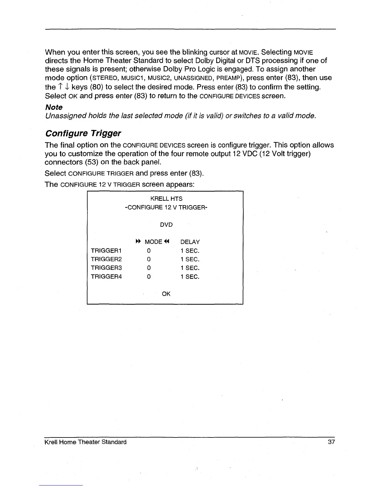 you to customize the operation of the four remote output 12 VDC (12 Volt trigger)