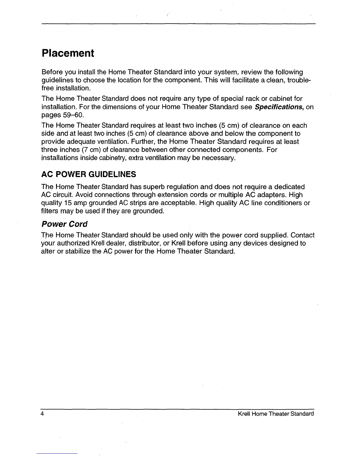 The Home Theater Standard should be used only with the power cord supplied. Contact