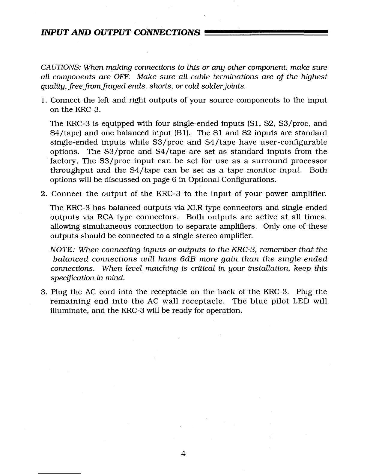 2. Connect the output of the KRC-3 to the input of your power amplifier.