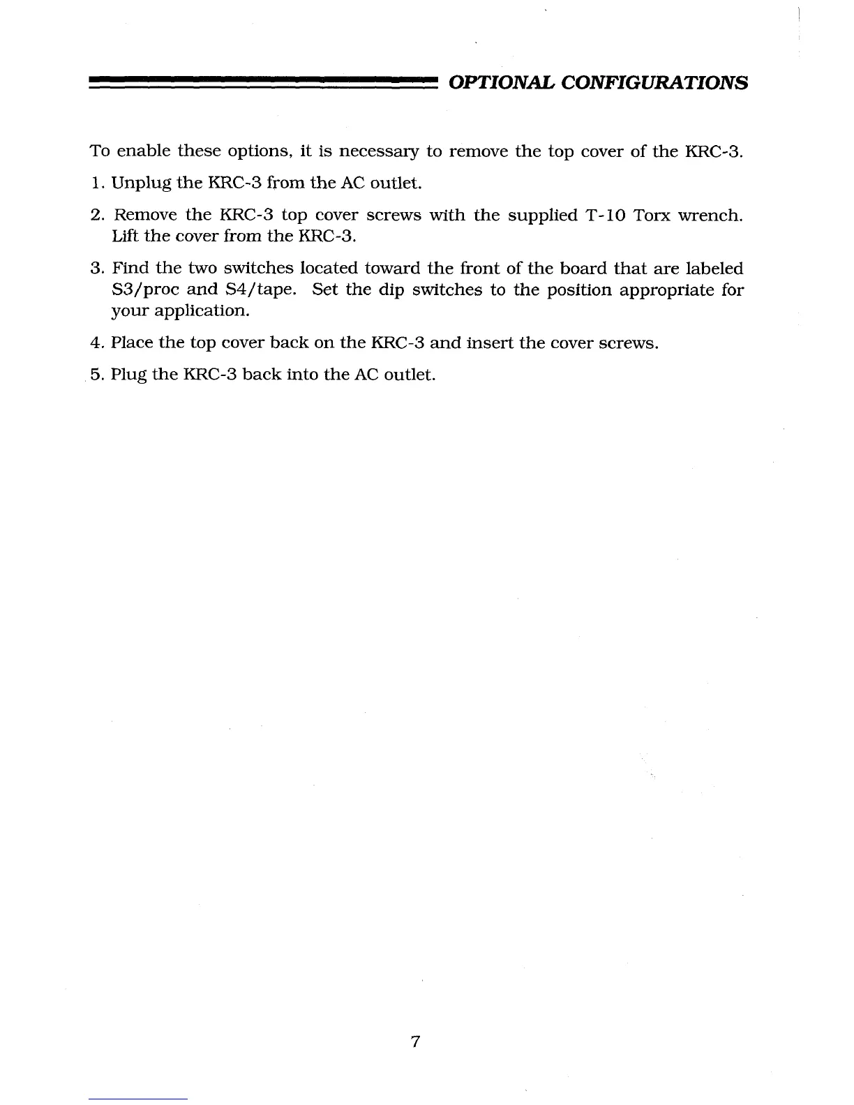 To enable these options, it is necessary to remove the top cover of the KRC-3.