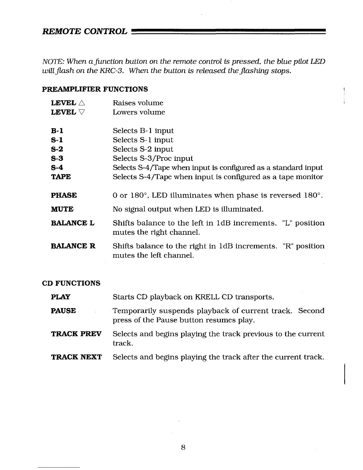 NOTE: When a function button on the remote control is pressed, the blue pilot LED