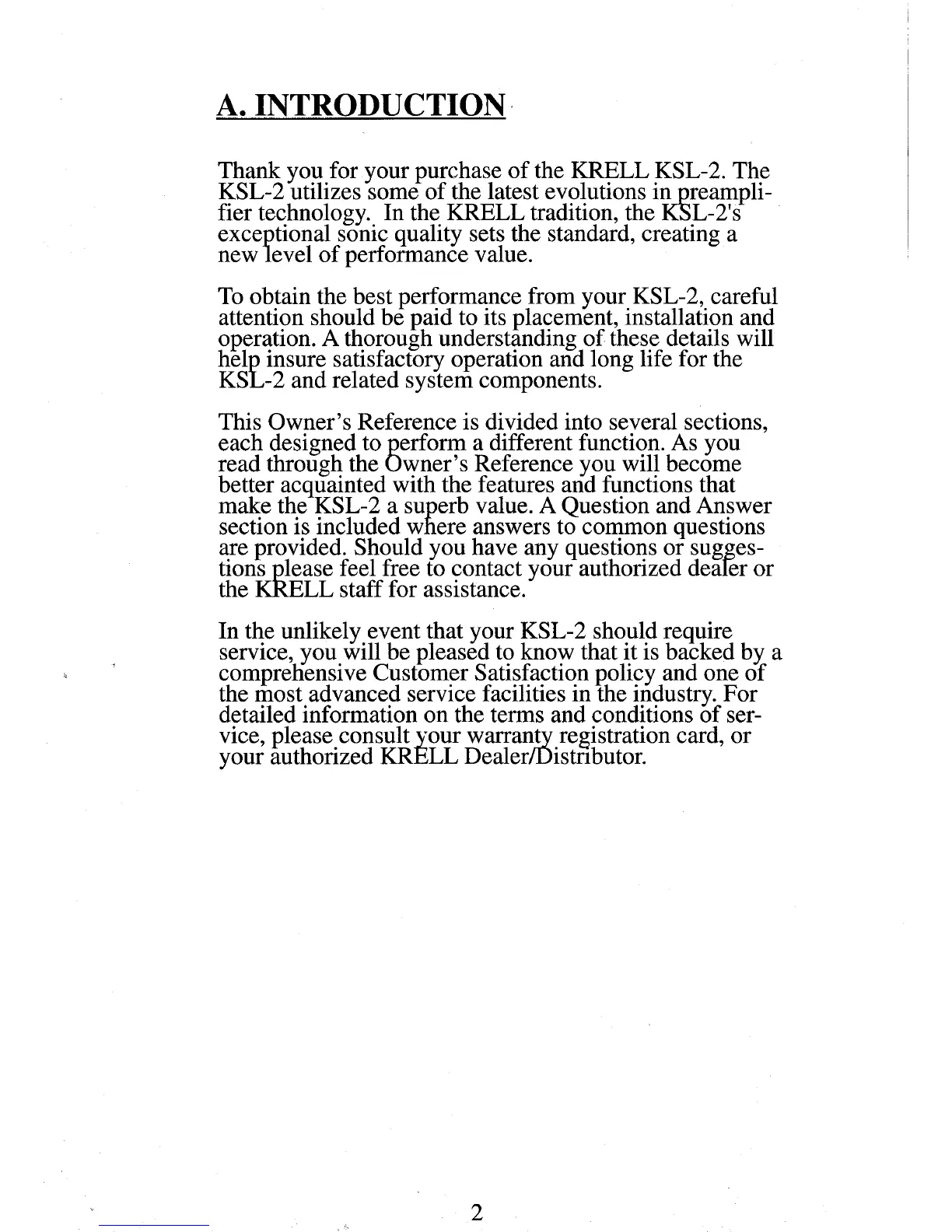 Thank you for your purchase of the .KRELL KSL-2. T.he