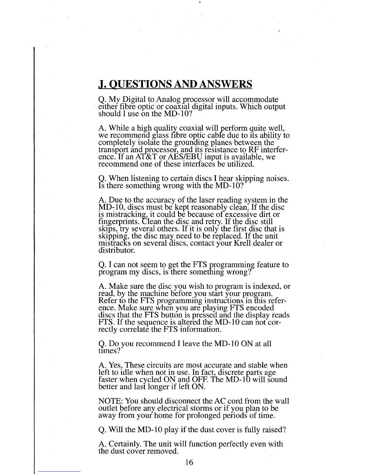 Q. Will the MD-10 play if the dust cover is fully raised?