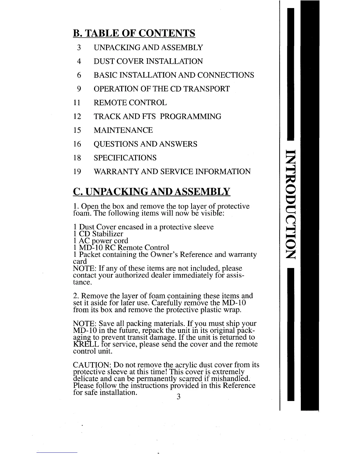MD-10 in the future, repack the unit in its original pa,ck-