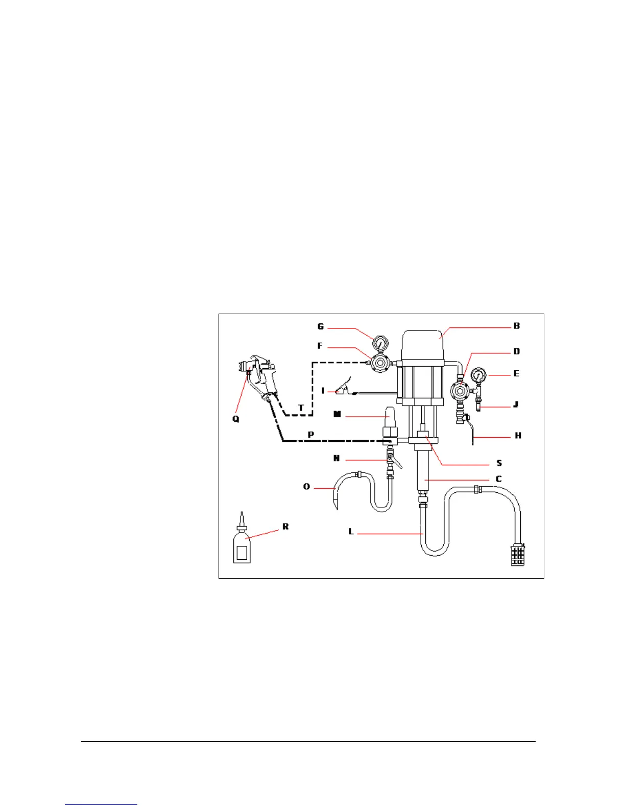 The air motor is supplied with compressed air by means of the regulator (D) (Red knob). The pressure is