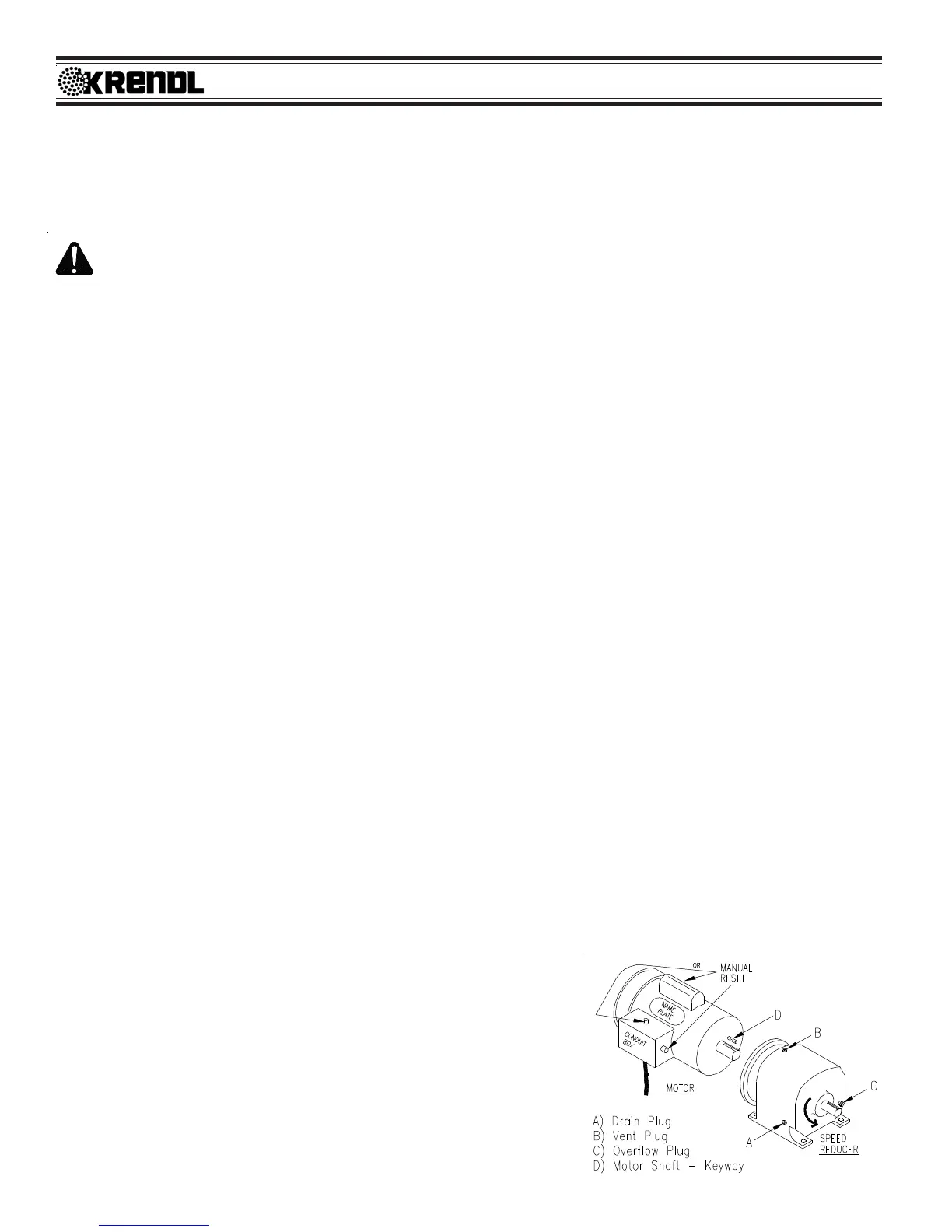 Periodically check oil level in reducer. Do not lay machine on its side as lubricant will drain from vent plug. If speed reducer