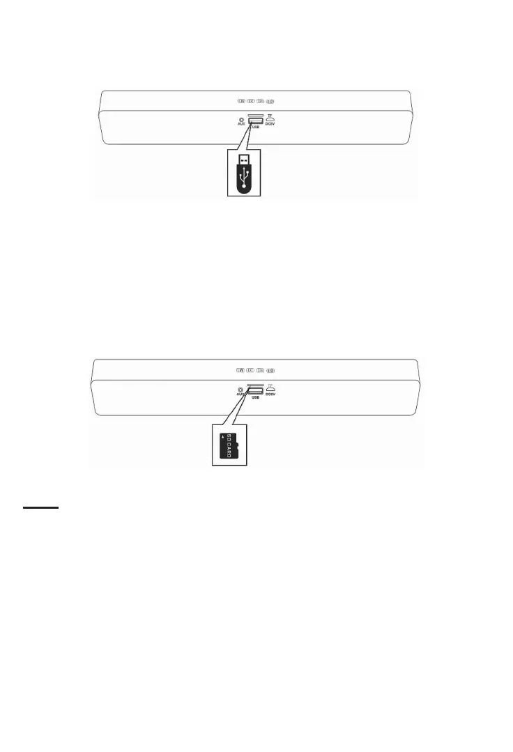 • Ao inserir o disposivo USB ou o cartão SD, verique se o endereço de inserção do
