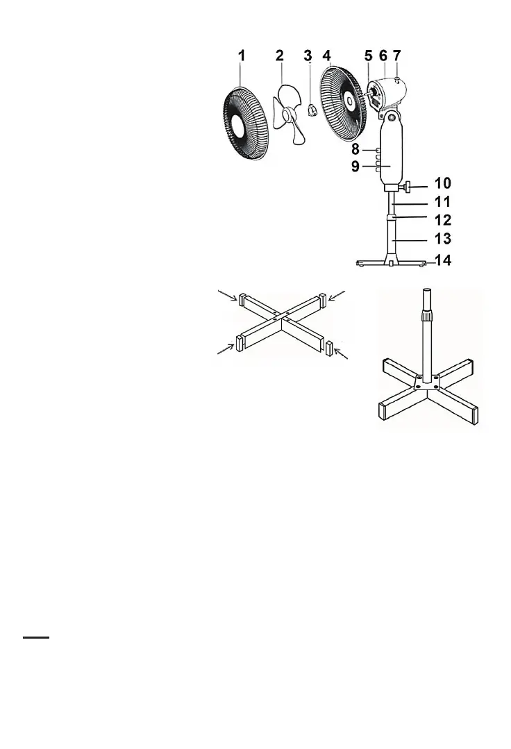 • Fix the motor unit of the fan on the top of the upper tube and ghten it with the locking
