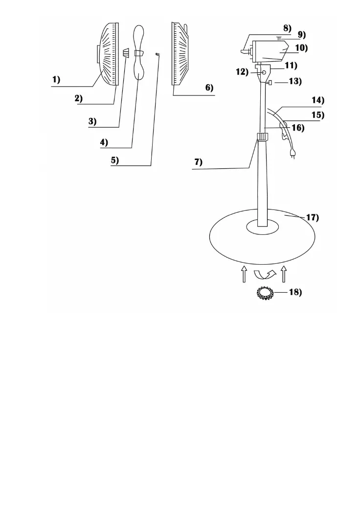 7. Botão de ajuste de altura 8. Eixo do motor 9. Botão oscilante