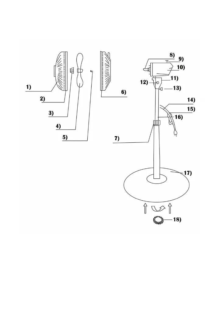 16. Tubo de extensión 17. Pie de venlador 18. Tuerca de plásco