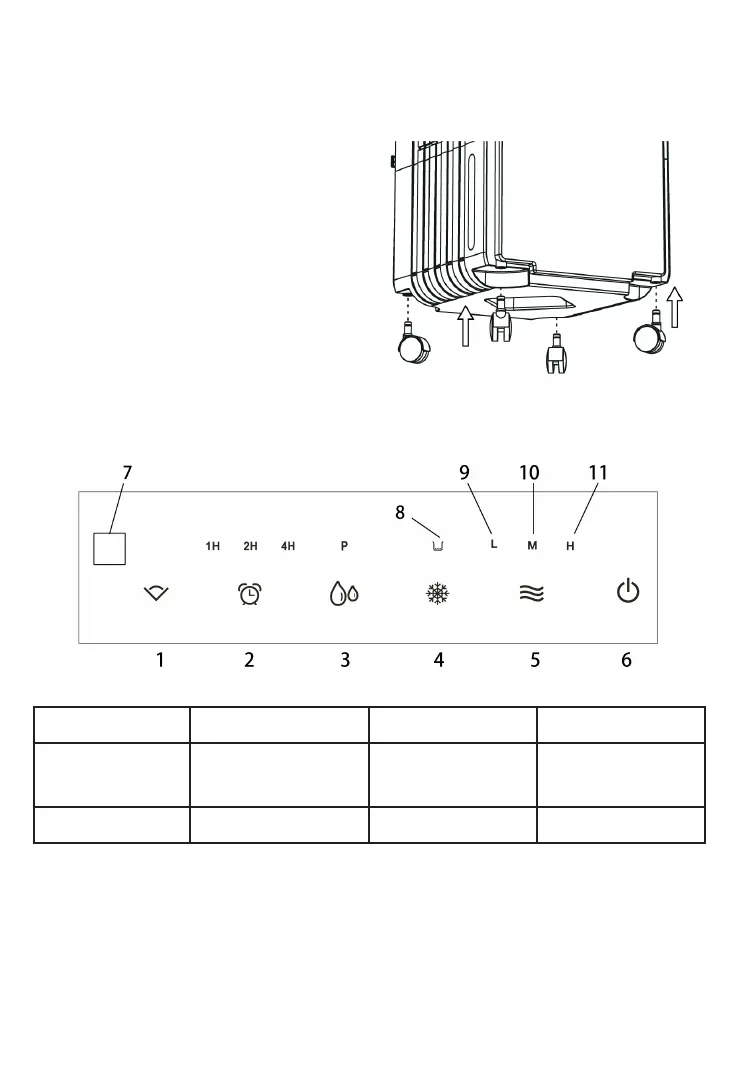 1. Oscilación 2. Temporizador 3. Humidicación 4. Frío