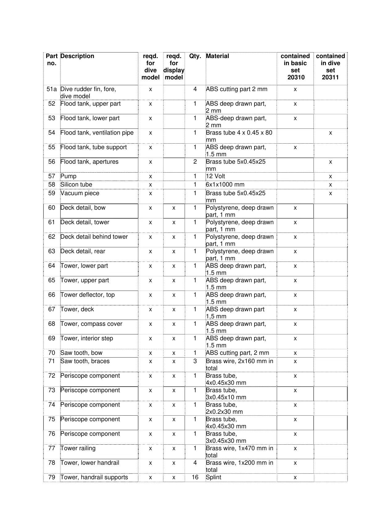 60 Deck detail, bow x x 1 Polystyrene, deep drawn