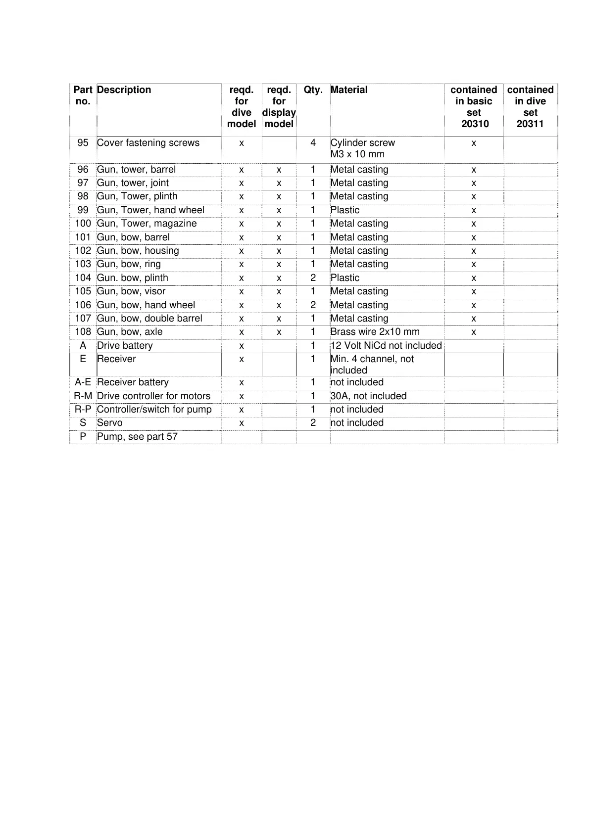 97 Gun, tower, joint x x 1 Metal casting x