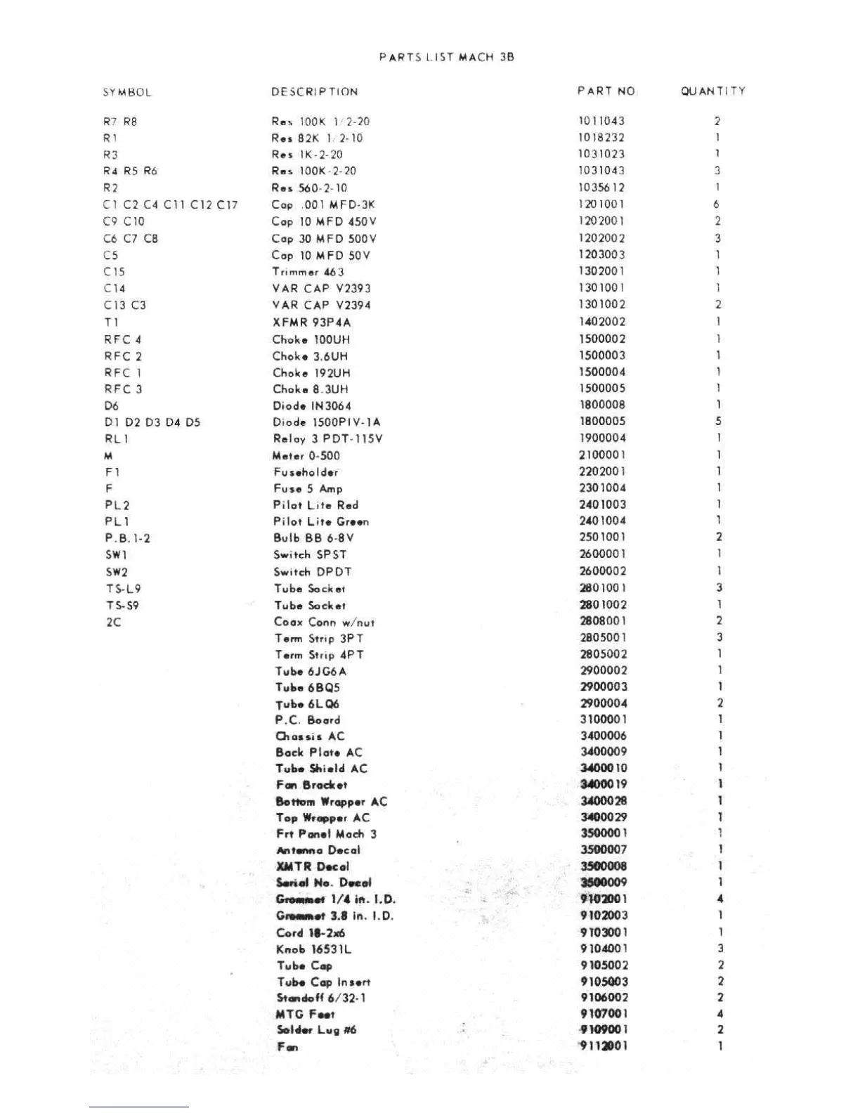 Kris Mach 3b - Parts List