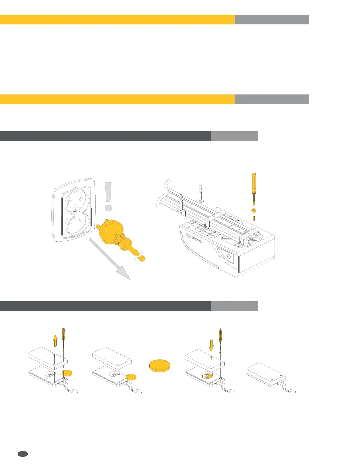 Prüfen Sie, ob alle Piktogramme mit den Warnungen aufgeklebt wurden und ob sich das Typenschild am Antrieb und am Tor befindet.