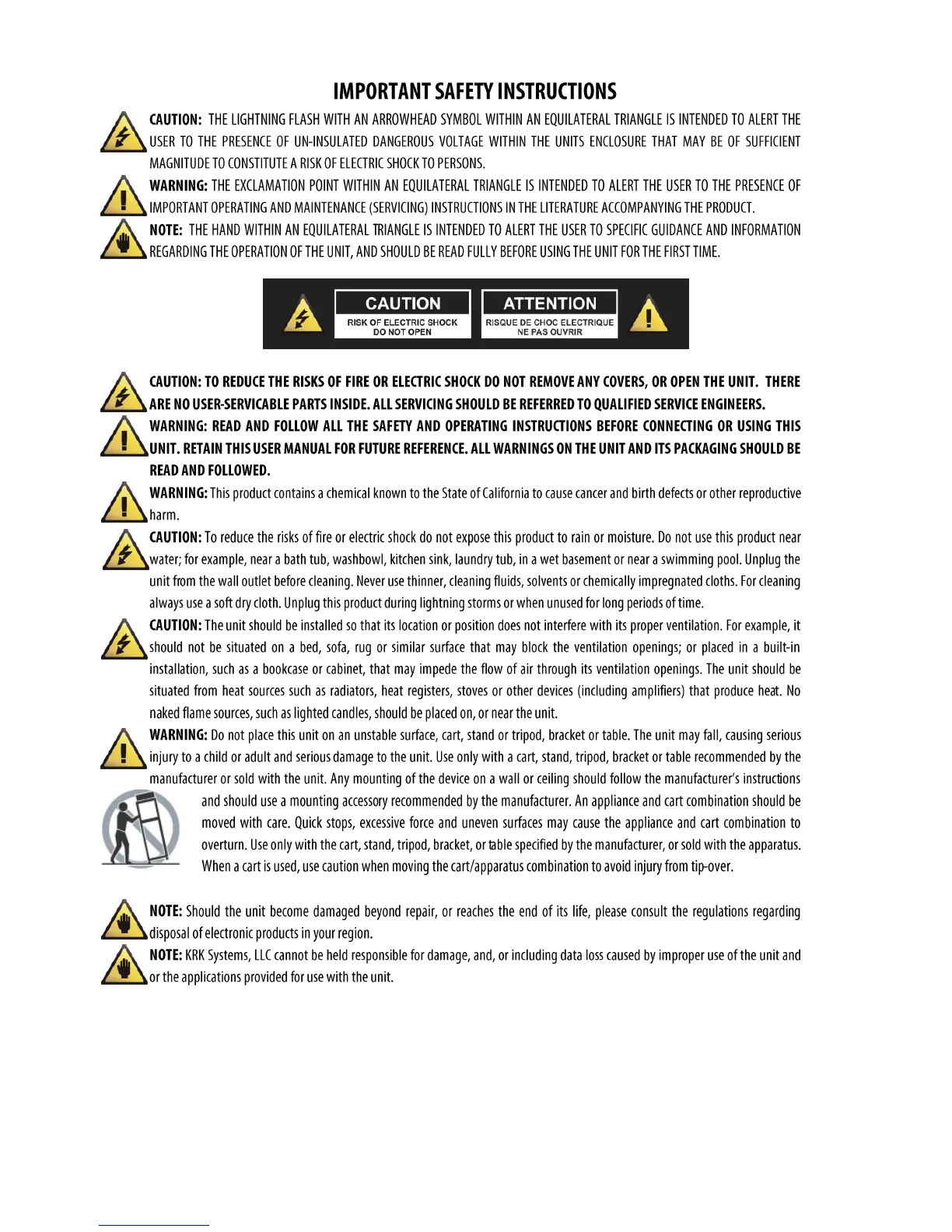 KRK 12s - IMPORTANT SAFETY INSTRUCTIONS; General Safety Precautions