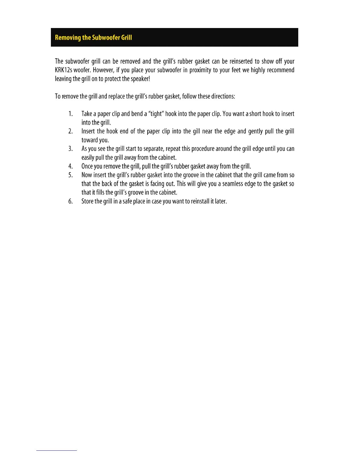 KRK 12s - Removing the Subwoofer Grill