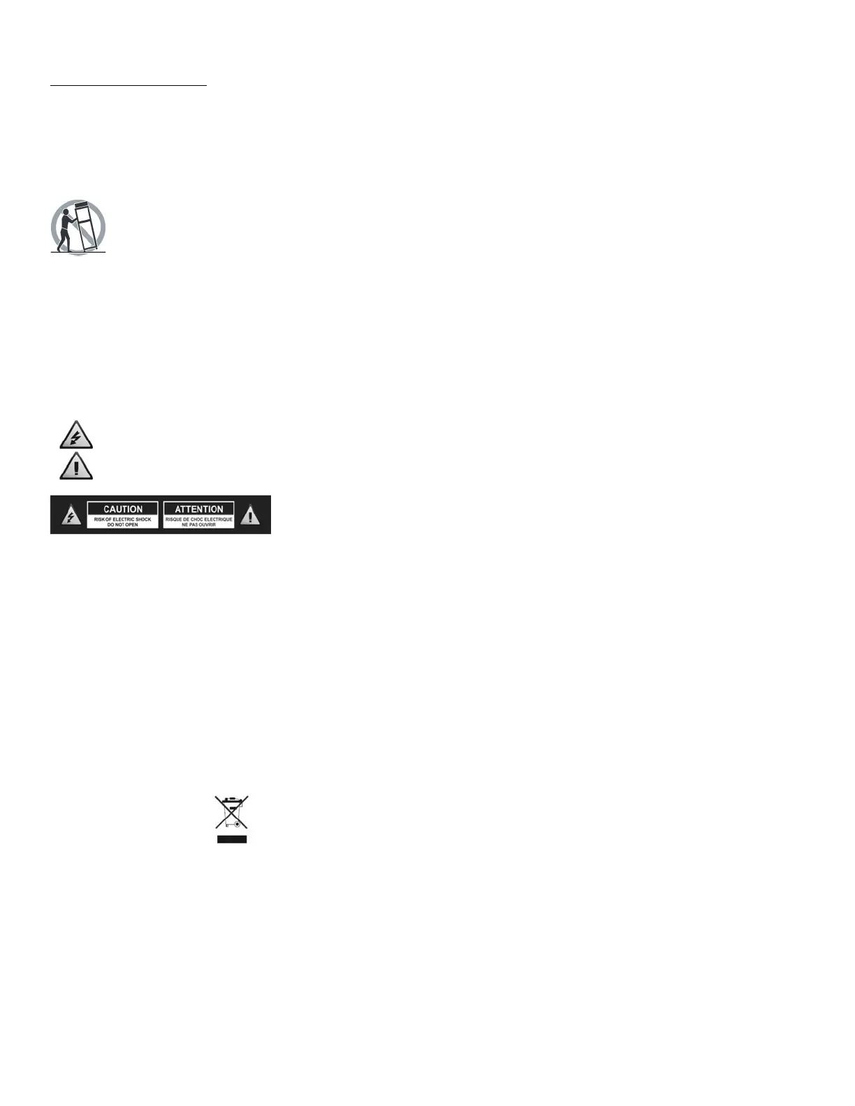 Chariot - Déplacez le chariot et l'appareil avec beaucoup de précaution. Un arrêt brusque, des mouvements violents ou des surfaces accidentées peuvent faire renverser le produit et le chariot.