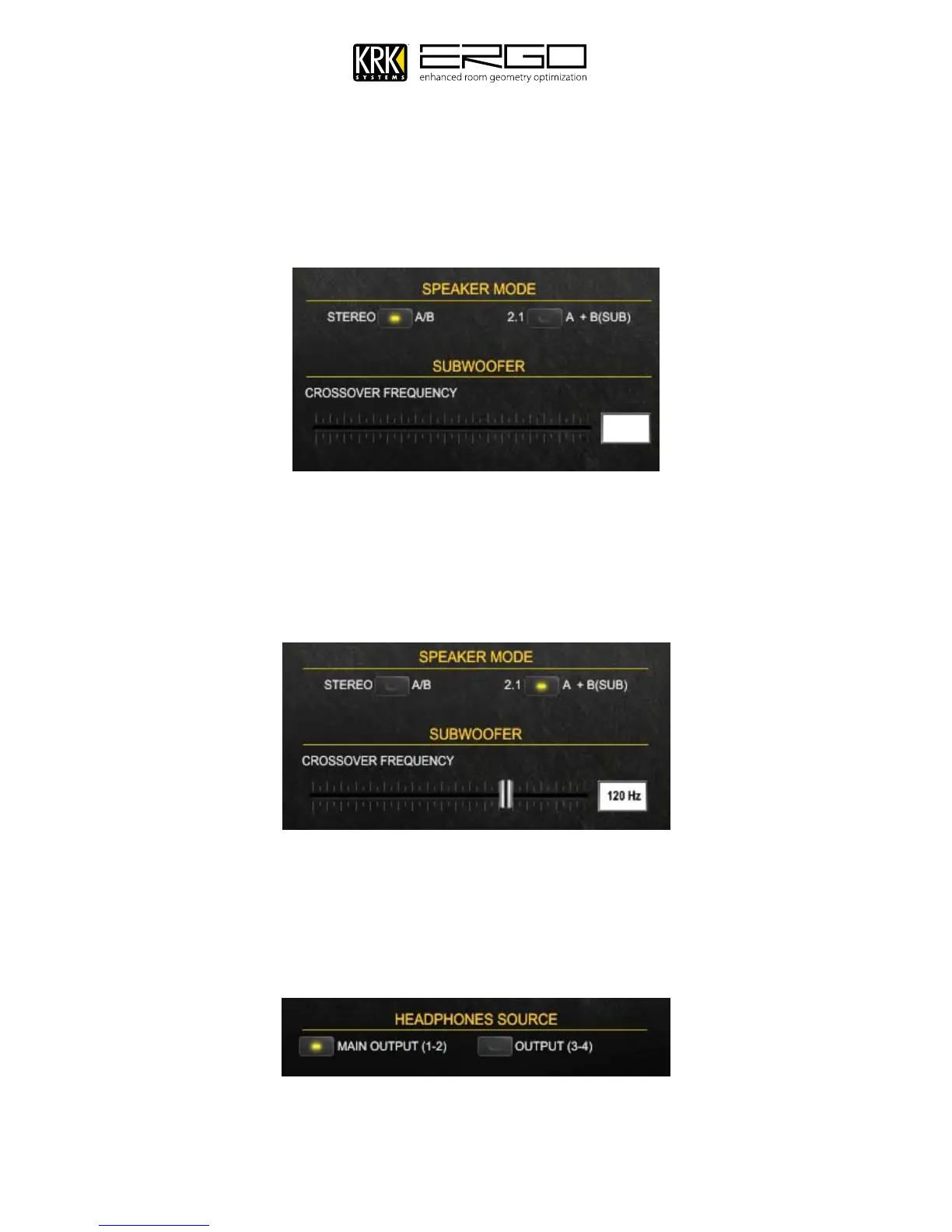 If selecting 2.1 Mode, as shown below, a fader will appear along with a value for the crossover frequency. Use