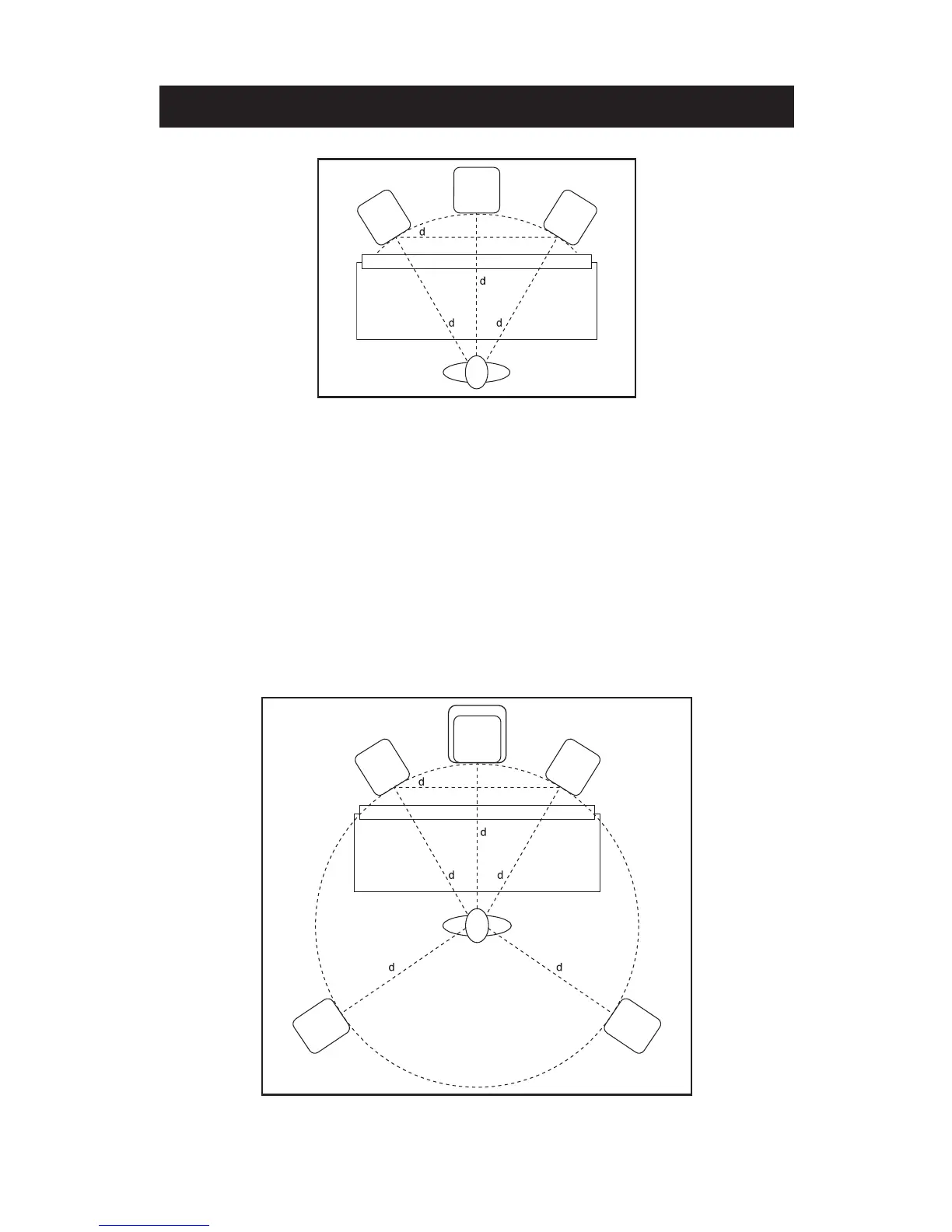 el canal central, y equidistantes de la posición de escucha. El canal surround