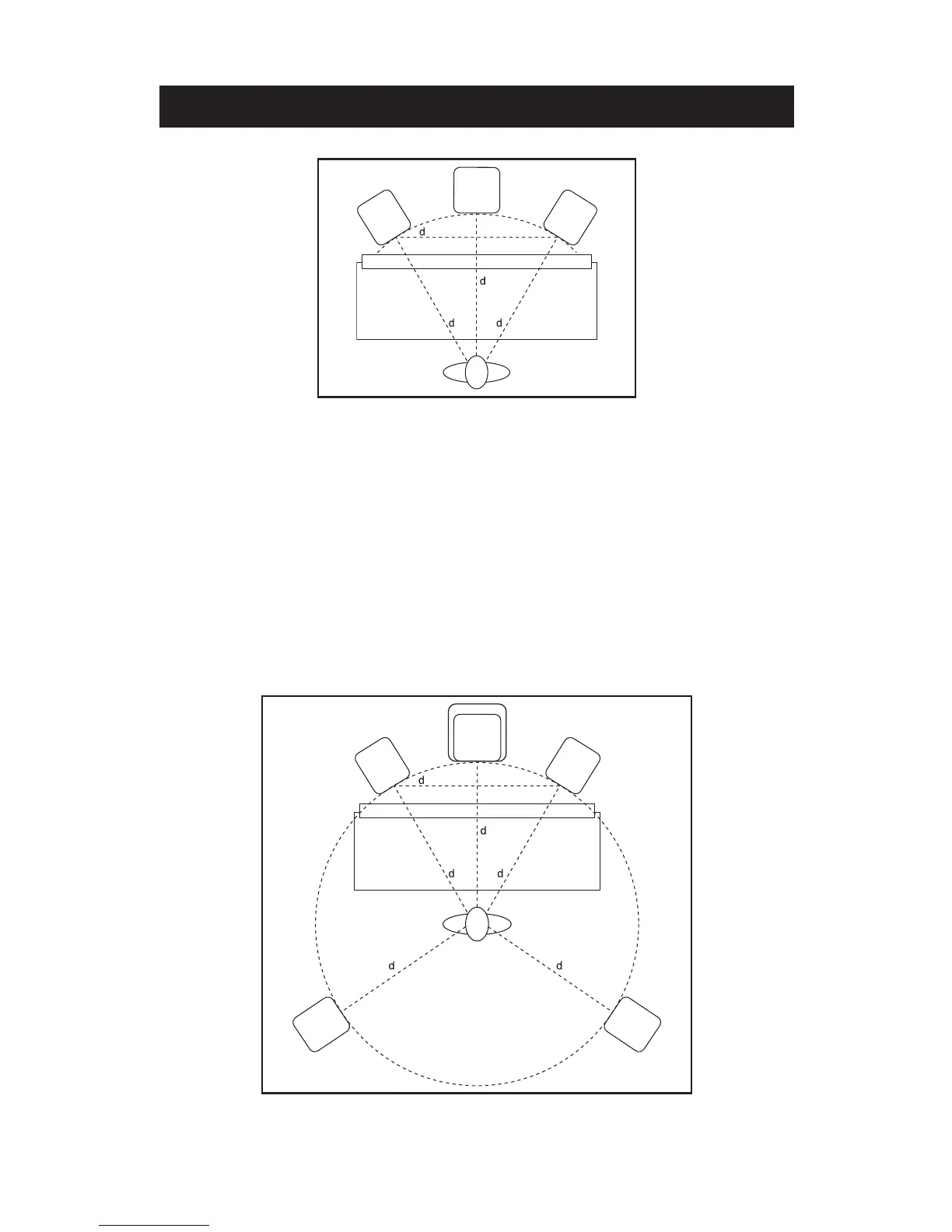 (arrière) et droit (arrière) doivent être placés à 110 degrés du canal central. Leur
