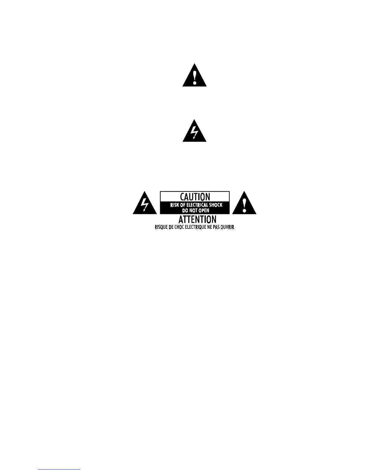 Caution: To prevent the risk of shock, do not remove the cover (or open the speaker enclosure). There are