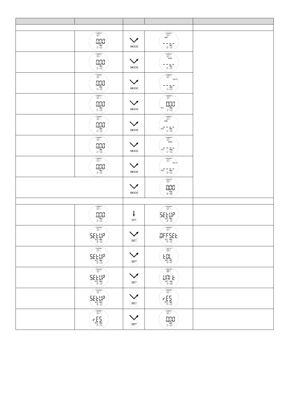 Note: The gauge switchs back into the last used measuring mode, if no key has been pushed for longer than 30 sec. in the setup