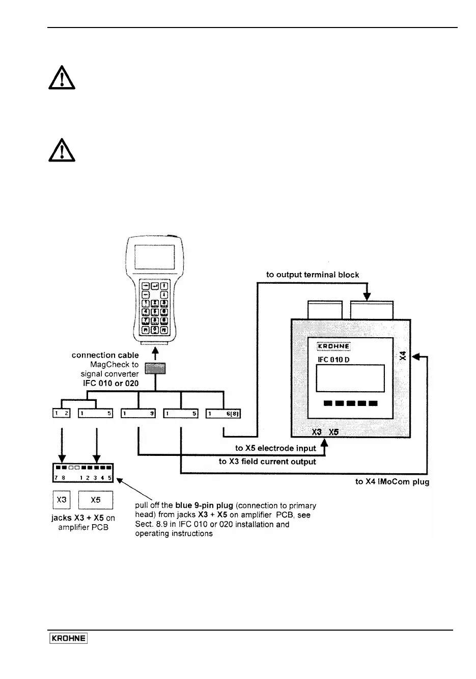 verification of converters Connections to flow head (field coils and electrodes) are