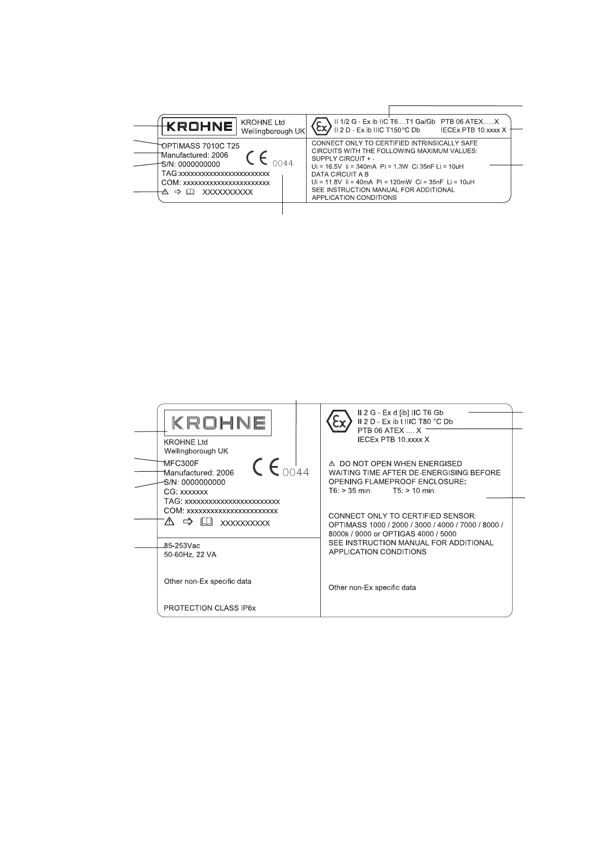 The data plate on the connection box of separate mass flow sensors typically contains the fol-