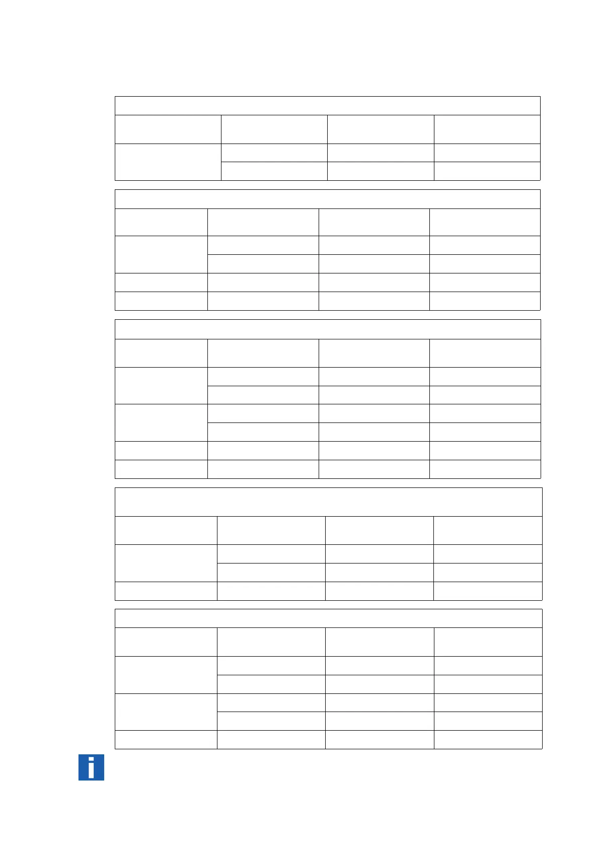 the following tables: