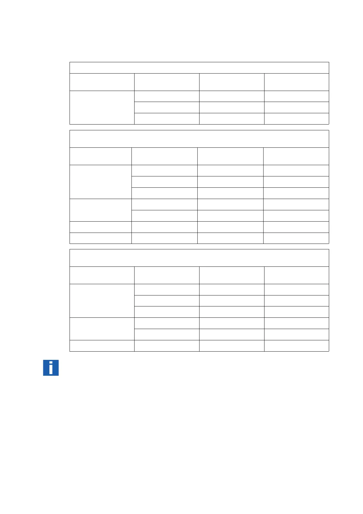 the following tables: