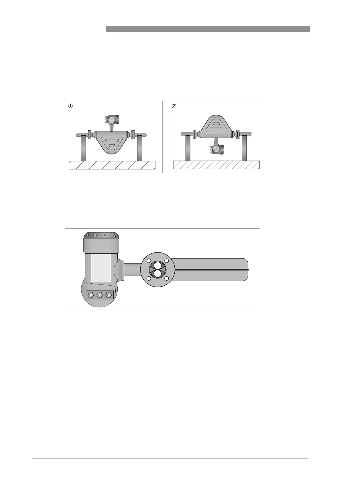 1 Where liquids are being measured, mount the meter as shown. This will prevent gas building up in the measuring tube,