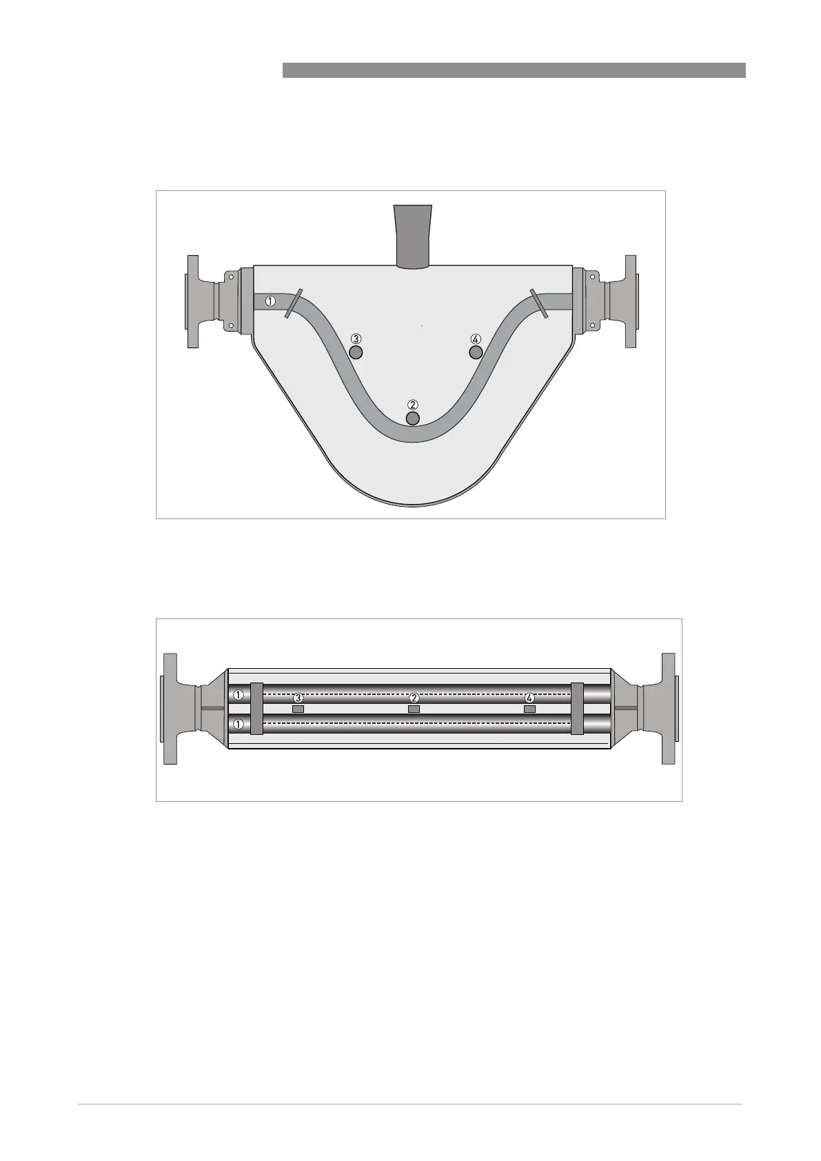 A Coriolis twin tube mass flowmeter consists of two measuring tubes 1 a drive coil 2 and two