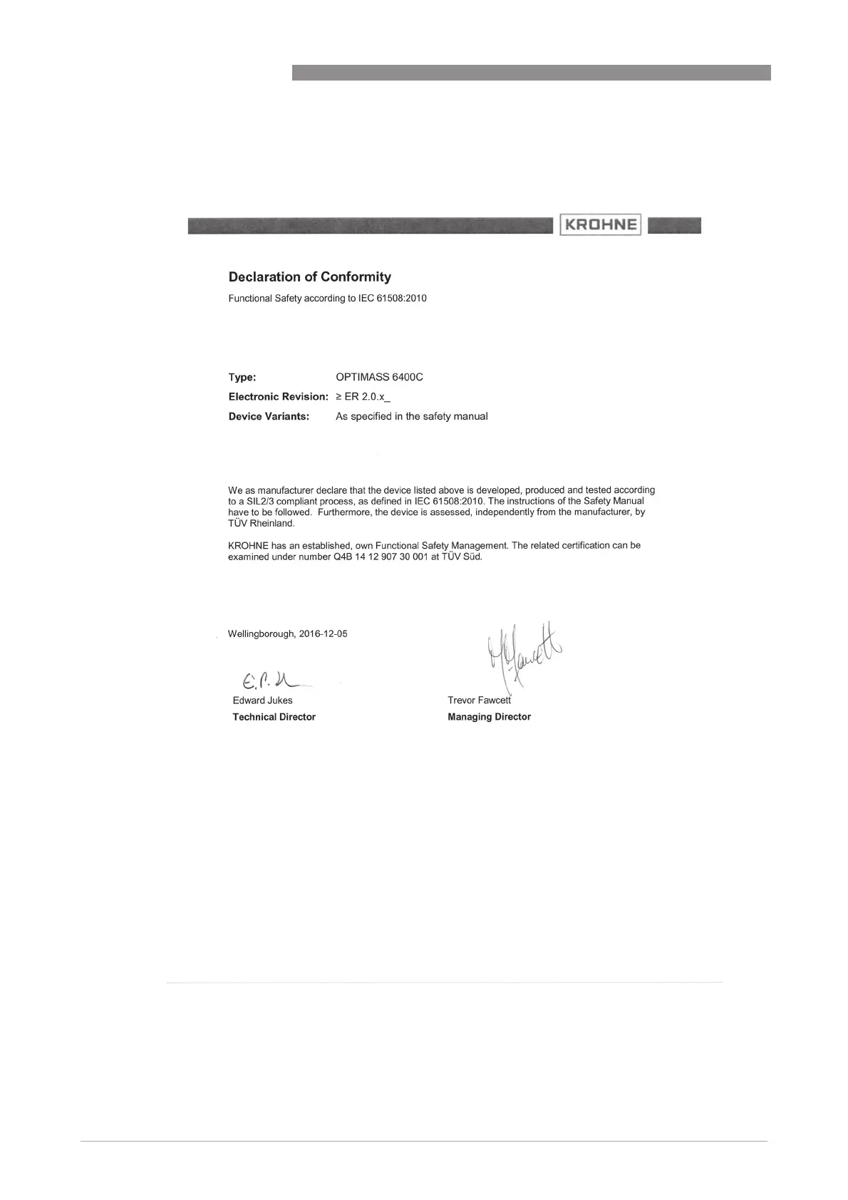 KROHNE OPTIMASS 6400 - Declaration