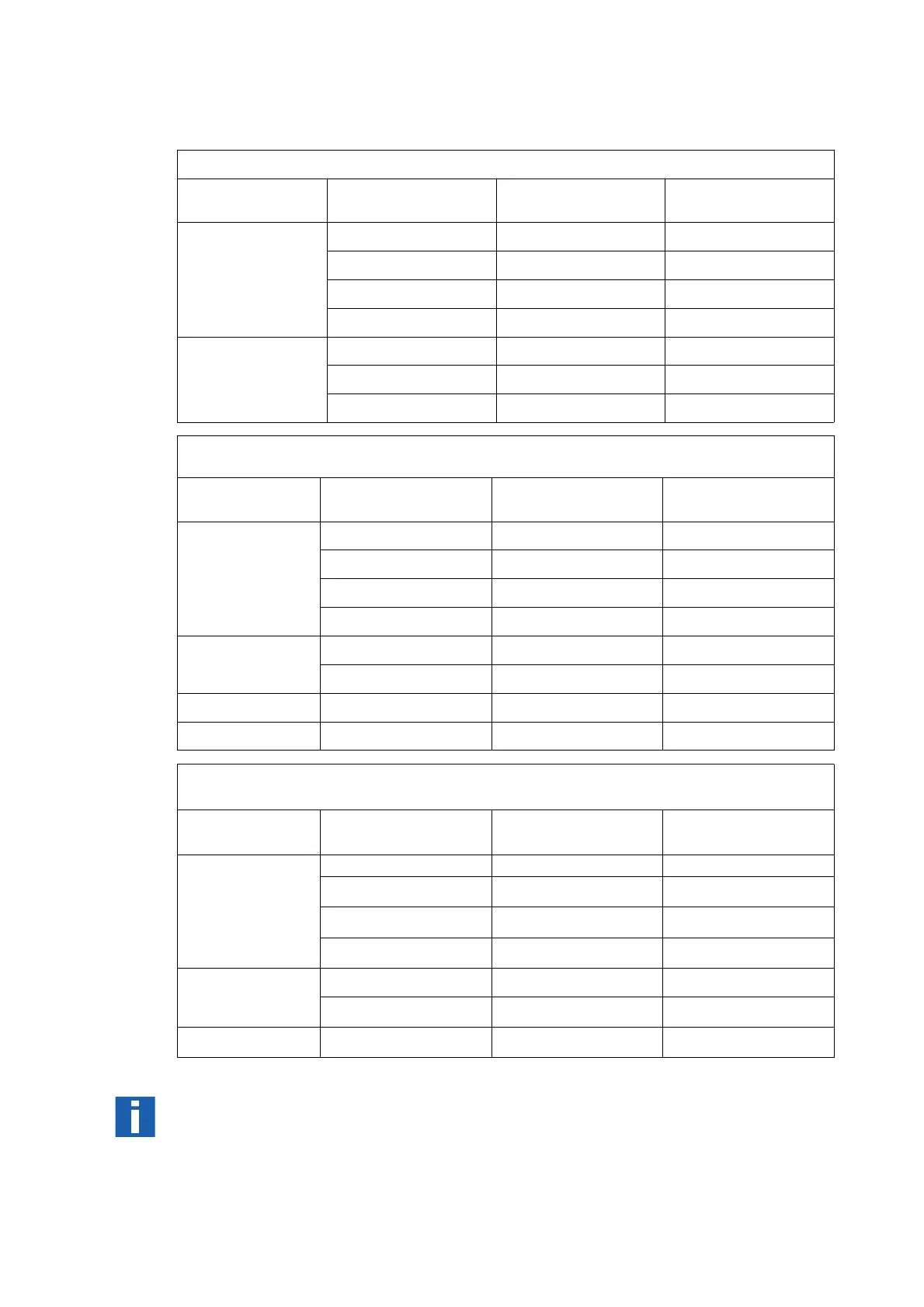 the following tables:
