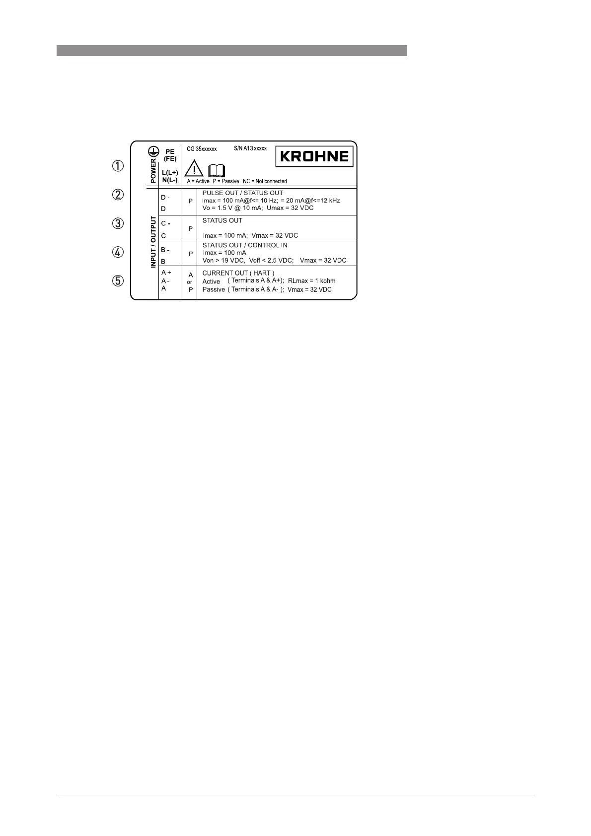 • A = active mode; the signal converter supplies the power for connection of the subsequent