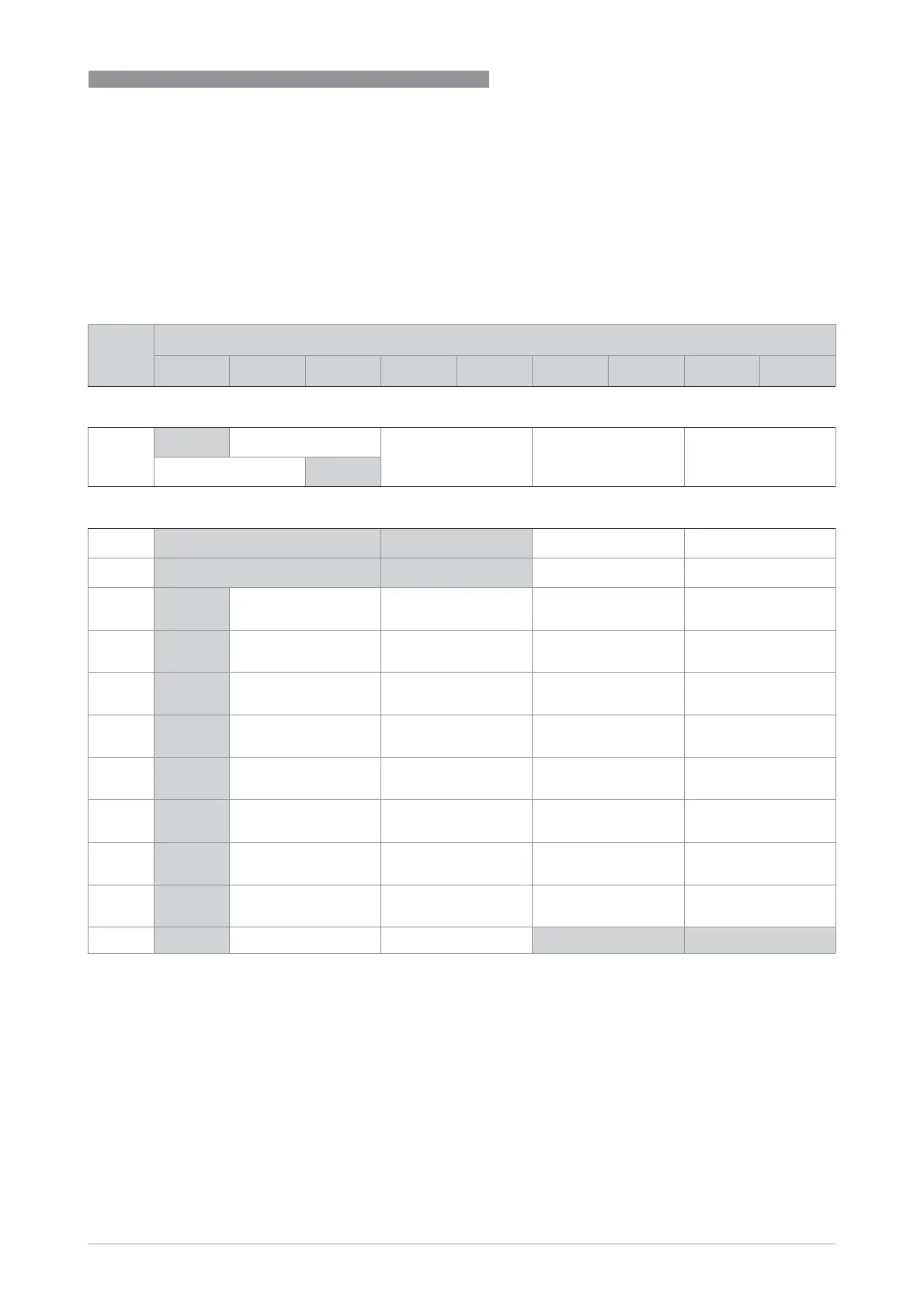 • The grey boxes in the tables denote unassigned or unused connection terminals.