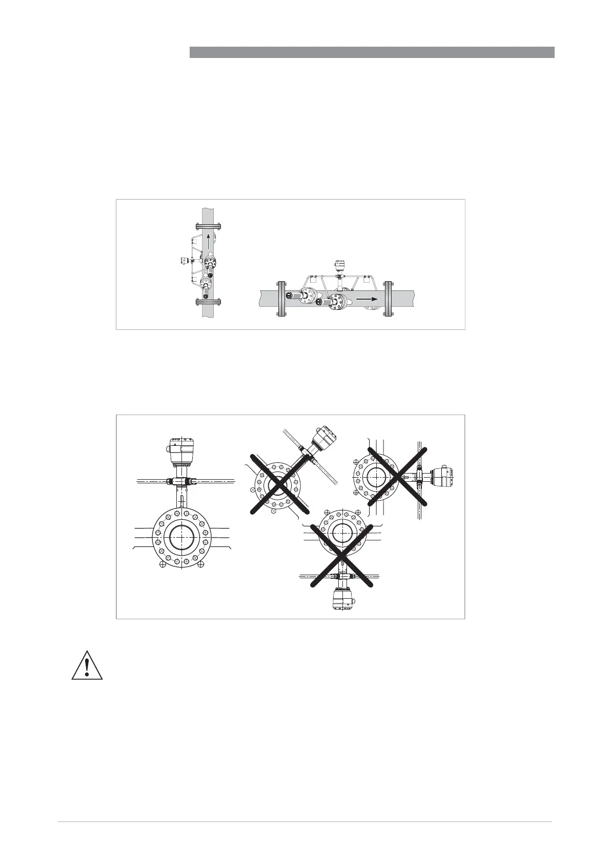 • Install the flowmeter in horizontal position only in case of the presence of liquids and/or in