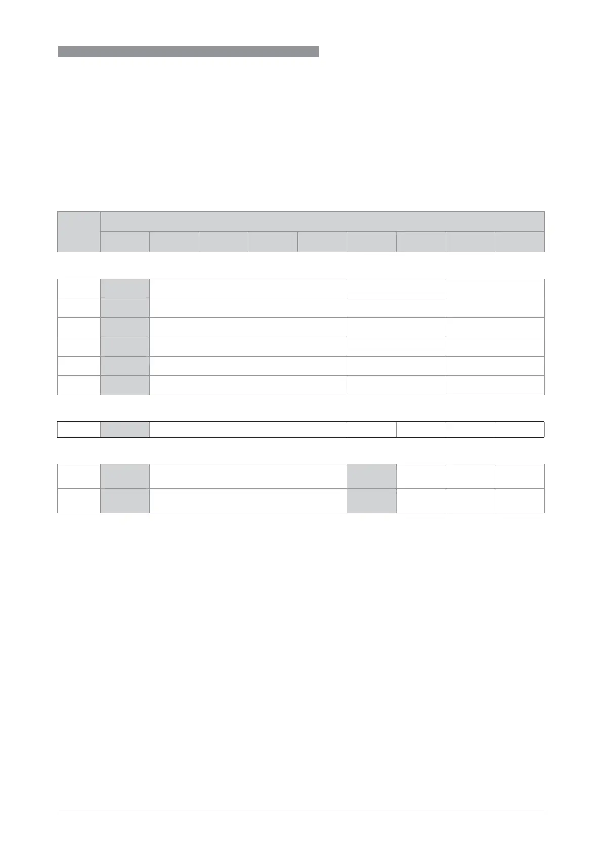 • The grey boxes in the tables denote unassigned or unused connection terminals.