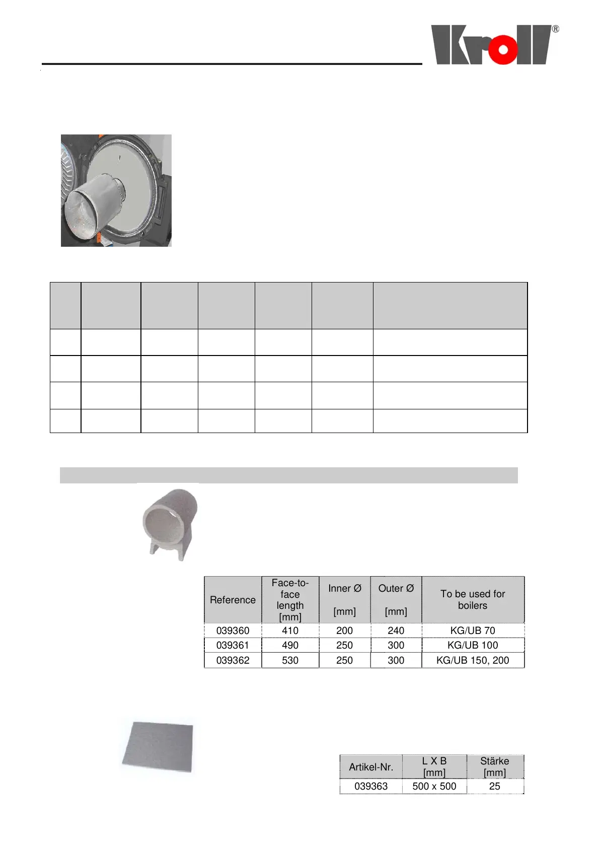 d) to be used in boilers - ZVP-tube with Ø 180 mm and fibre mat