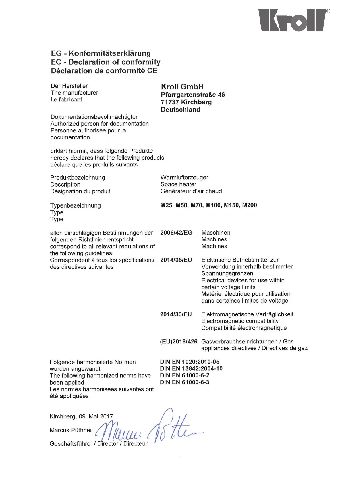 Other manuals for Kroll M25